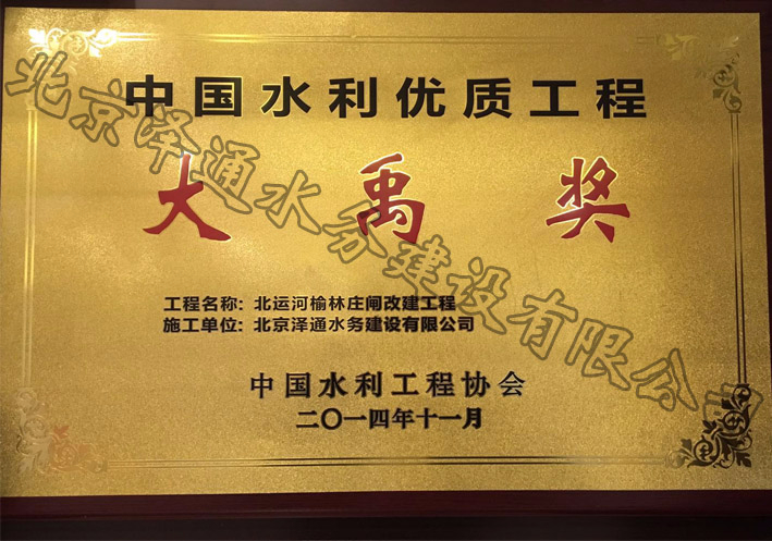 中國水利優(yōu)質(zhì)工程大禹獎(jiǎng)